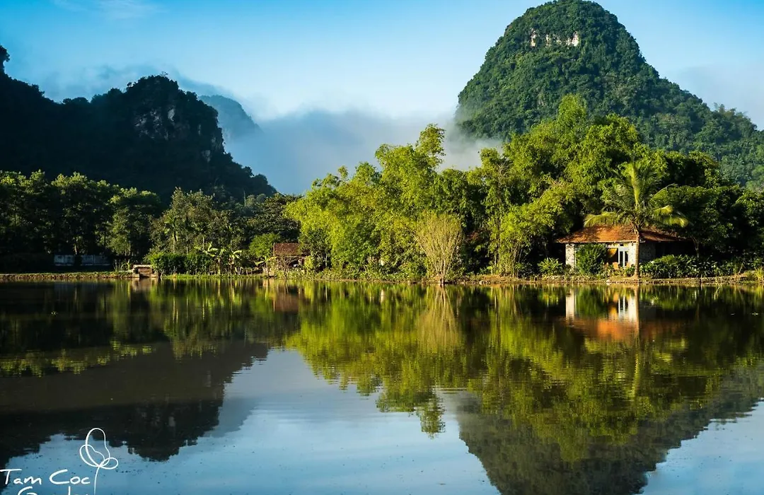 Tam Coc Garden Resort, a 5-star Ninh Binh hotel rated 9.6/10 on Booking.com, offers a unique experience in a Tonkinese village atmosphere surrounded by rice paddies and limestone mountains. Guests can indulge in organic cuisine and relax in a serene setting designed for cultural immersion and eco-friendly tourism.