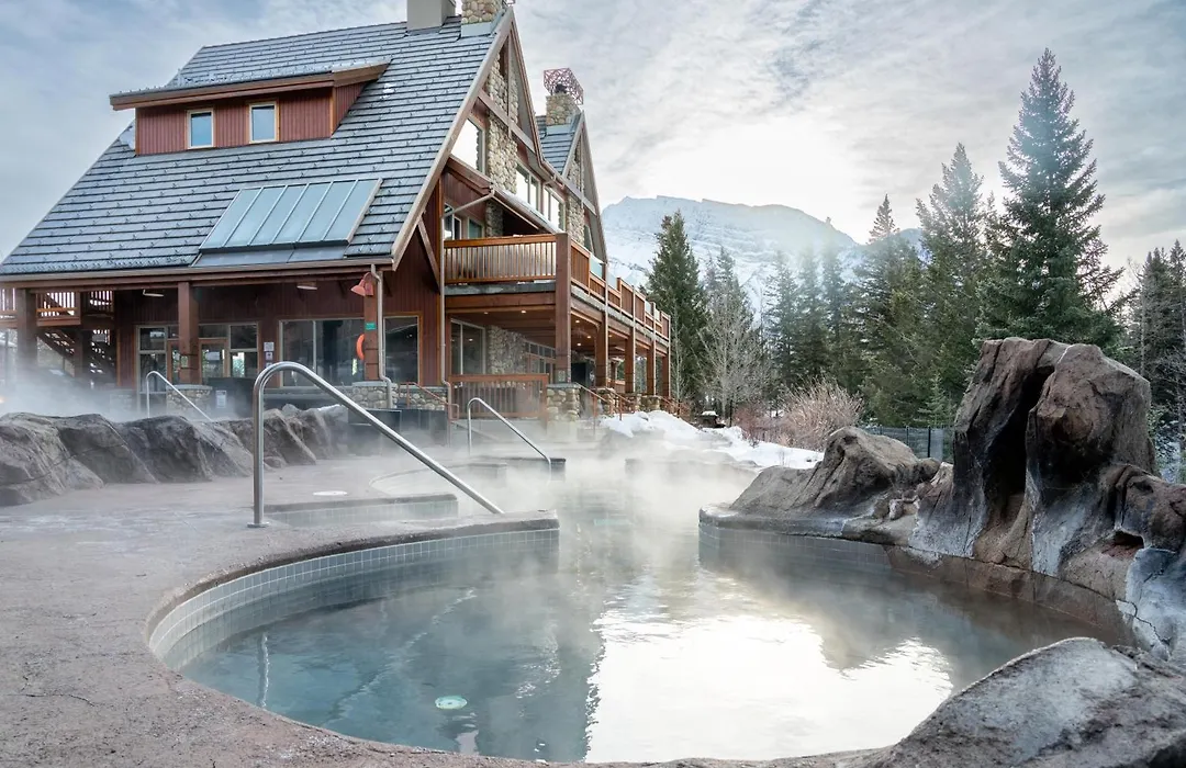The resort offers a games room featuring foosball and bubble hockey. Outdoor hot pools provide areas for relaxation, while a local hospitality company partners for various activities around Banff National Park. A visitor center is available for assistance.