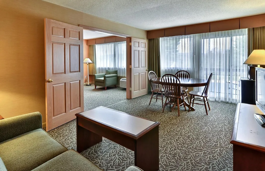 Toftrees Golf Resort offers various accommodations, including King Club Rooms, Deluxe King Rooms, and spacious two-room suites with amenities such as complimentary Wi-Fi and private patios. Each room features a flat-screen TV and a workspace, making it suitable for both leisure and business travelers.