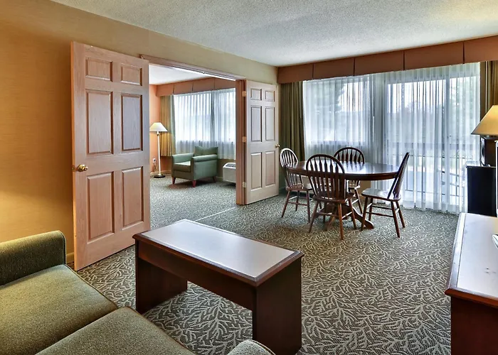 Toftrees Golf Resort, a 3-star State College hotel, features a premier 4.5-star golf course and offers 102 guest rooms and suites with modern amenities. The resort includes an outdoor pool, fitness center, and a farm-to-table restaurant, ensuring a comfortable stay for all guests.