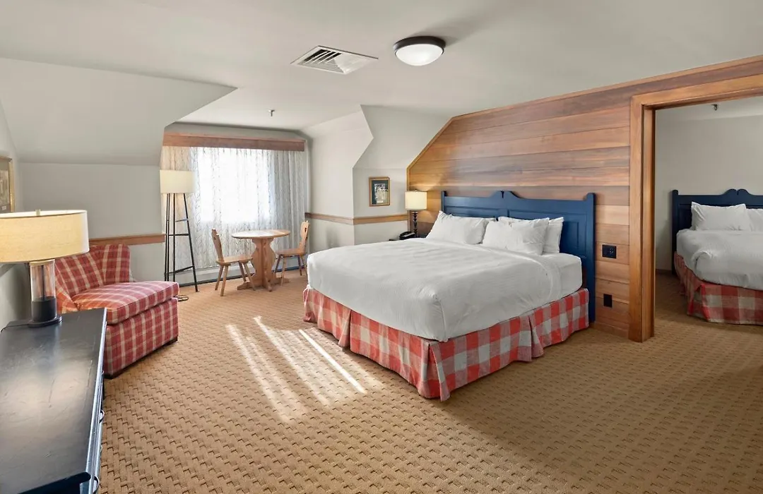 Accommodations at Von Trapp Family Lodge & Resort include 96 rooms, suites, and villas that feature fully equipped kitchens, traditional furnishings, and some with balconies offering mountain views. Notable room types such as the von Trapp Suite include spacious layouts with king beds and living areas. Each accommodation provides complimentary high-speed internet and flat-screen TVs.