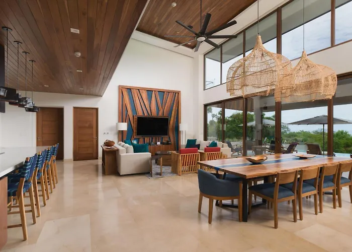 Dining options include Cocina de Mercado, showcasing local and international cuisines, and Zona Azul Beach Club, offering casual beachside dining in a lively atmosphere. The Living Room bar serves craft cocktails and small bites, while fine dining possibilities are available at Latitud 10° Norte. Guests can enjoy meals by the pool or at the beach club.