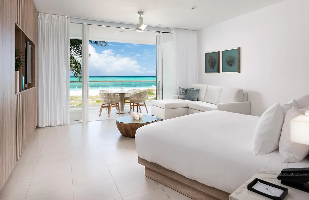 Wymara Resort & Villas, a 5-star Grace Bay hotel with a 9.2/10 rating on Booking.com, offers luxurious accommodations and a variety of upscale amenities. Guests can enjoy an iconic infinity pool, a beach club with unique ocean pool, and a wellness-focused spa.