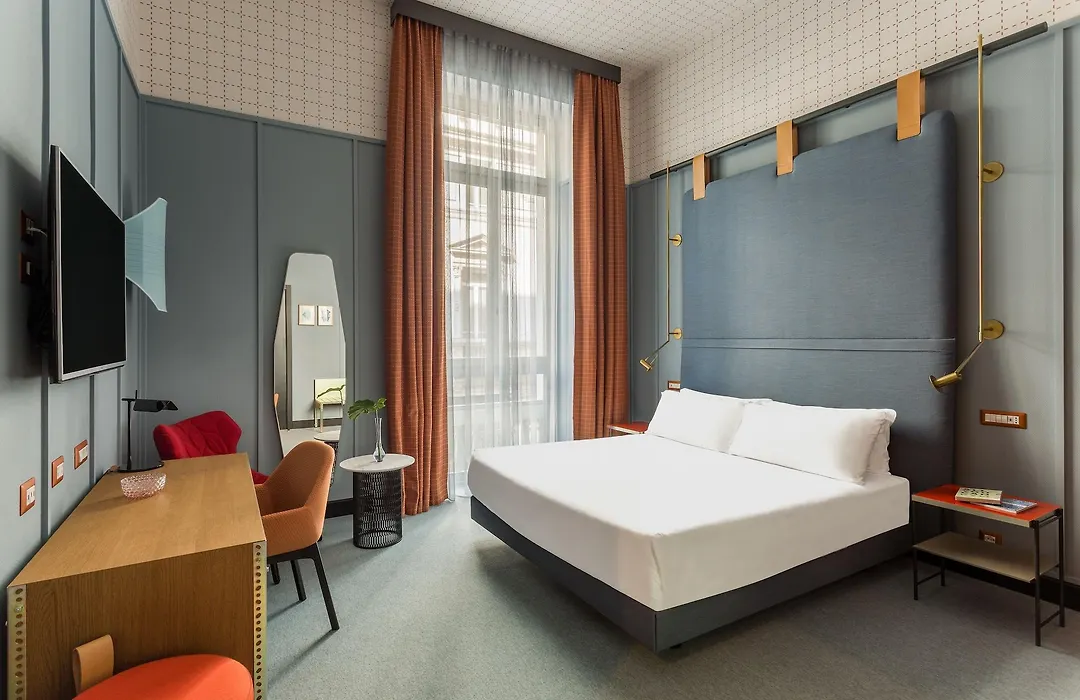 Room Mate Collection Giulia boasts 85 rooms designed with vibrant pink, green, and blue tones, complemented by terracotta bricks from Lombardy. Each room includes thoughtful touches such as USB/HDMI connections, air conditioning, and designer furnishings. Guests can enjoy a mini-bar and a flat-screen TV in every accommodation.