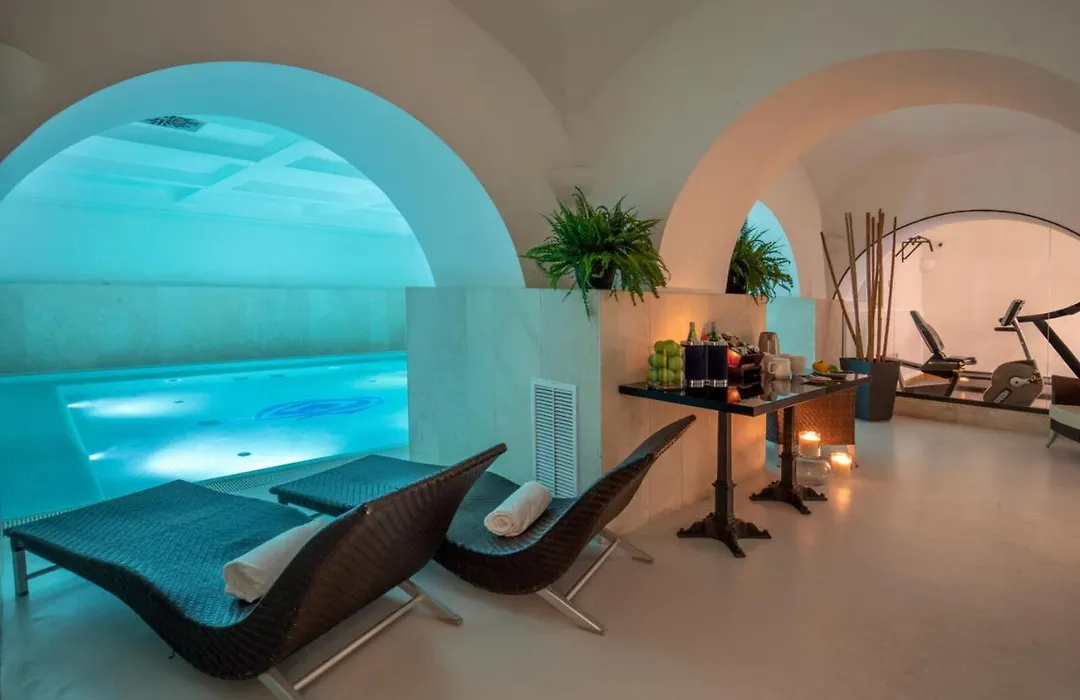 The hotel features a well-equipped spa with a hydromassage pool, sauna, and a small indoor pool. The fitness area offers a range of exercises, while business travelers can utilize high-tech conference rooms that accommodate various group sizes.