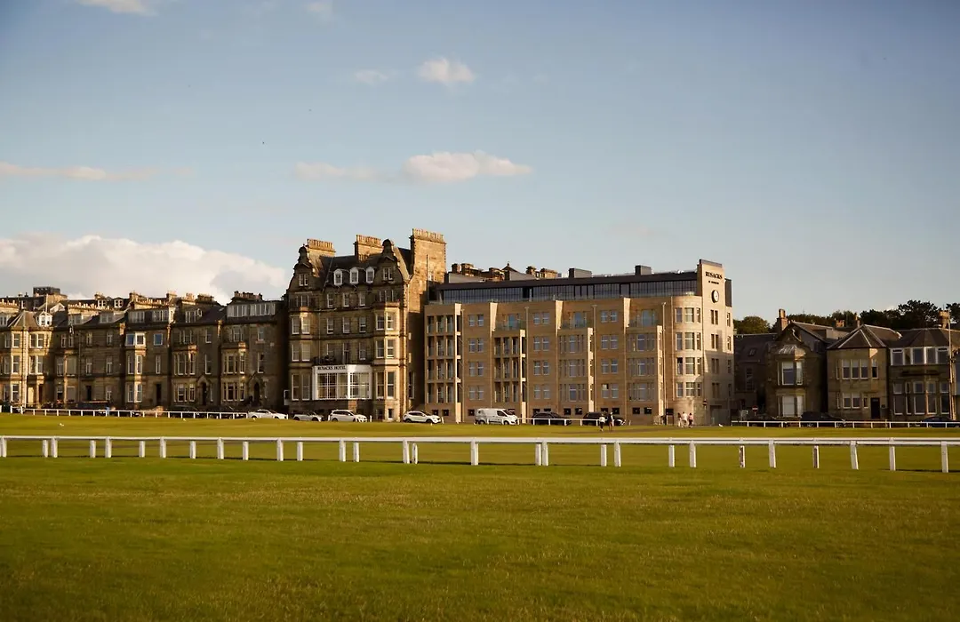 Rusacks St Andrews is a 5-star hotel with a 9.1/10 rating on Booking.com, offering modern comforts in a historic setting. The hotel features a rooftop bar, acclaimed restaurants, and ample event spaces, making it ideal for both golfers and leisure travelers.