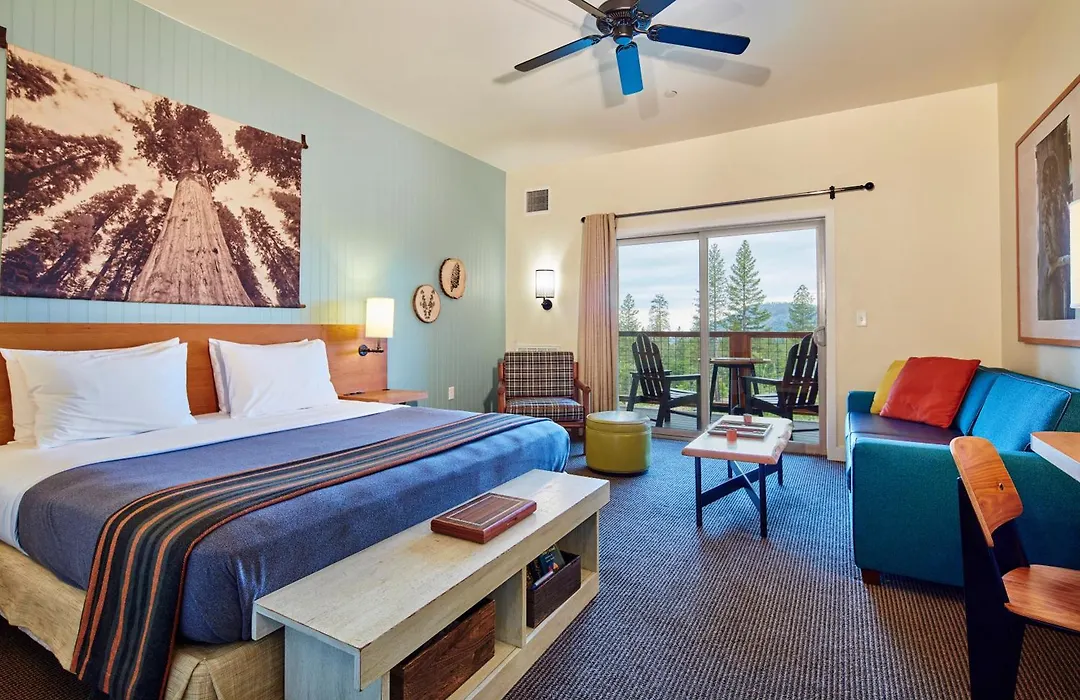 Rush Creek Lodge At Yosemite provides various accommodations, including 143 lodge rooms, suites, and hillside villas all featuring private decks with nature views. Every villa includes a master bedroom, a sitting area with a queen sofa bed, and a gas fireplace. The spacious one-bedroom suites comfortably accommodate up to four with a separate living room and expansive outdoor space.