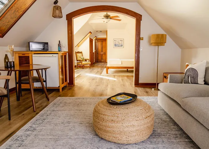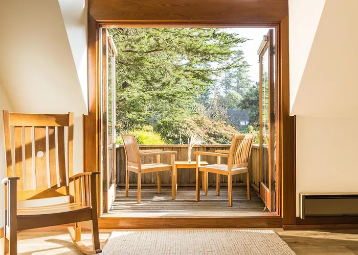 The inn's location allows guests to explore nearby landmarks, including Big River Beach at Mendocino Headlands State Park, 2 miles away, and Albion River Bridge, 3.5 miles away. The property is surrounded by tranquil gardens and the scenic Van Damme State Park.