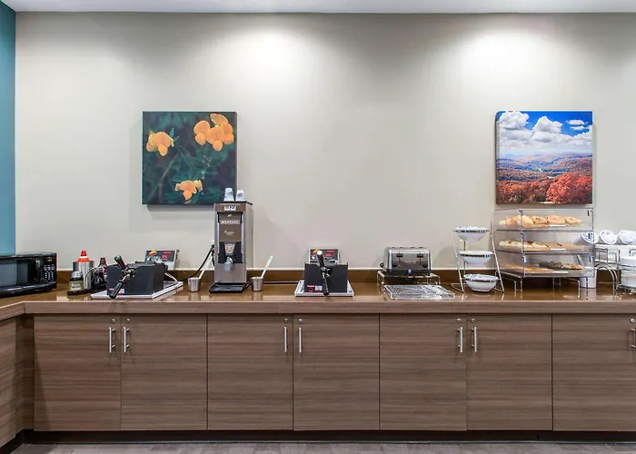 The hotel serves a free full hot breakfast every morning, with weekday hours from 5:30 AM to 9:30 AM. Nearby dining options include Storm King Tavern and Plum House Restaurant, ensuring guests have various food choices.