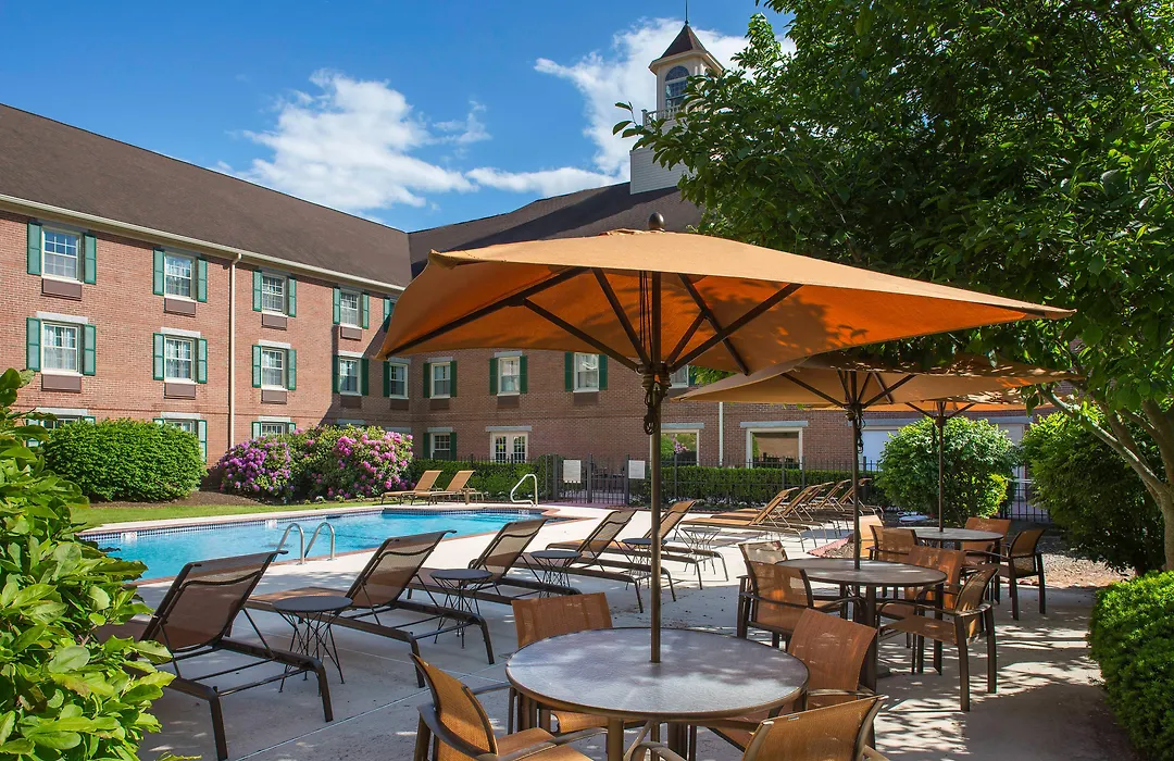 Rooms at Sonesta Select are equipped with flat-screen televisions, plush bedding, movable desks, and mini fridges, providing comfort for long or short stays. The hotel features a seasonal outdoor pool for relaxation, along with a fitness center that includes cardio equipment and free weights.