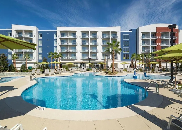 Springhill Suites Orange Beach At The Wharf is a 3-star hotel offering all-suite accommodations with a waterfront location. The hotel features modern amenities including a state-of-the-art fitness center and an outdoor pool, designed for leisure and business travelers. Guests can enjoy a complimentary daily breakfast and 24/7 snack options at The Market.