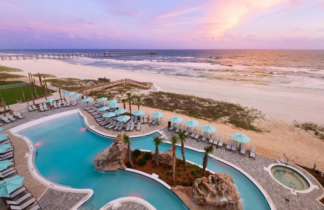 Leisure facilities include an outdoor swimming pool, hot tub, and a relaxing lazy river. The property is close to attractions such as Shipwreck Island Waterpark and Pier Park.