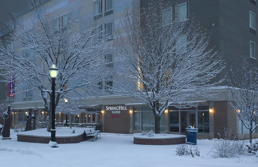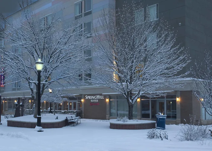 Springhill Suites By Marriott Grand Junction Downtown/Historic Main Street is a 3-star hotel offering modern amenities and large suites. Guests can enjoy a heated indoor pool and a culinary experience at Marlo's Lounge with outdoor fire pit. The hotel is located on a lush tree-lined street near dining, shopping, and entertainment options.