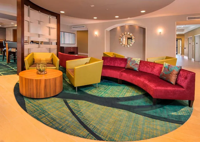 Rooms at Springhill Suites feature modern comforts, including premium bedding, air conditioning, and spaces designed for work and leisure. Each suite offers a seating area and a private bathroom equipped with a bath or shower.