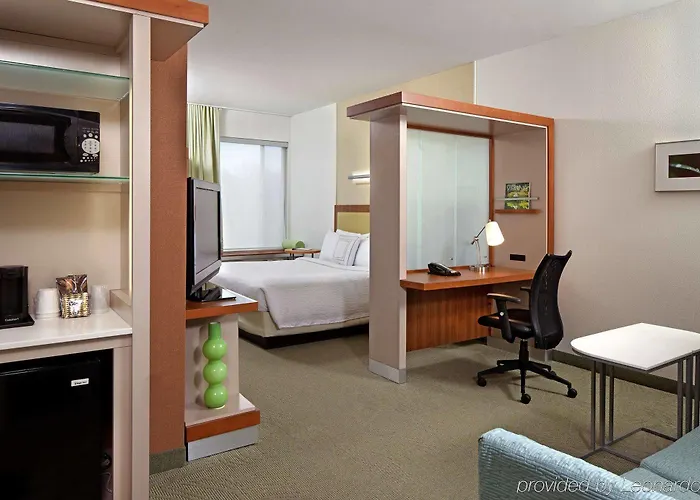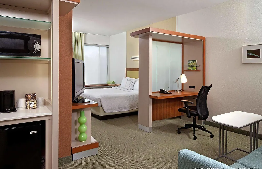 The suites at Springhill Suites provide plush Marriott bedding, a partition between the living and sleeping areas, a wet bar with pantry, and a work area with a desk and lamp. All rooms are equipped with laptop-friendly workspaces, air conditioning, and free internet access.
