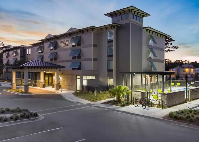 Springhill Suites Hilton Head Island offers modern suite accommodations with complimentary breakfast and 24-hour services. This 3-star hotel features a fitness center, outdoor pool, and 24/7 Market for snacks and necessities.