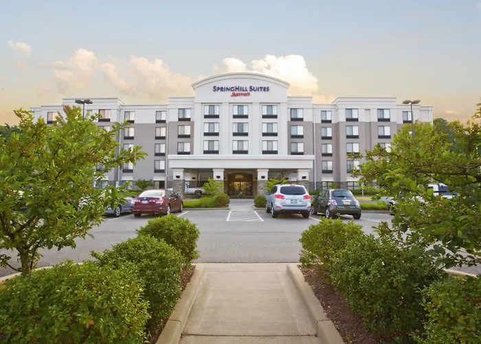 Dining options surrounding Springhill Suites include popular choices such as Bob's Sub, Five Guys, and Chili's Grill & Bar, all within a 0.3 miles distance. The hotel provides a complimentary breakfast on weekdays from 6:30 AM to 9:30 AM.
