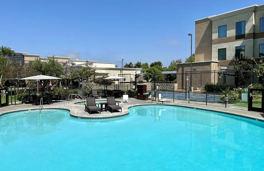 For recreation, the hotel offers an outdoor heated pool, whirlpool, fire pit, and fitness center equipped with state-of-the-art equipment. The outdoor space is designed for both relaxation and physical activities, with basketball facilities available. Close to the hotel, Carlsbad State Beach provides additional outdoor experiences.