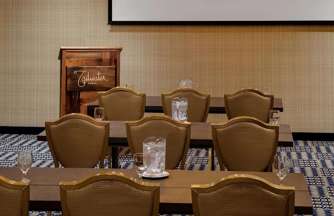 Dining options include the Tailwater Restaurant & Bar, offering thoughtfully prepared seafood dishes and comfort food favorites. Additionally, guests can enjoy beverages at the River Birch Bar, with an extensive beer selection and outdoor seating options.