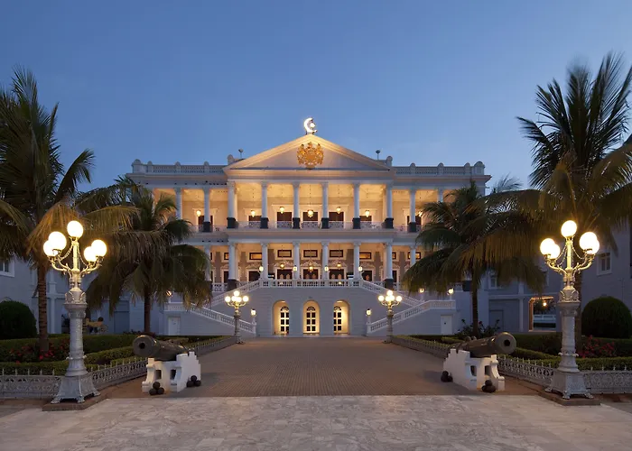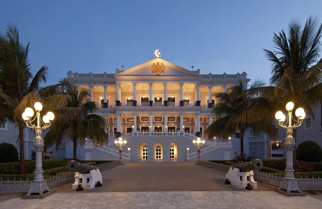 Taj Falaknuma Palace, a 5-star hotel rated 9.5/10 on Booking.com, offers a blend of luxury and history. This hotel features spacious accommodations, exquisite dining options, and an on-site spa amidst lavish gardens.