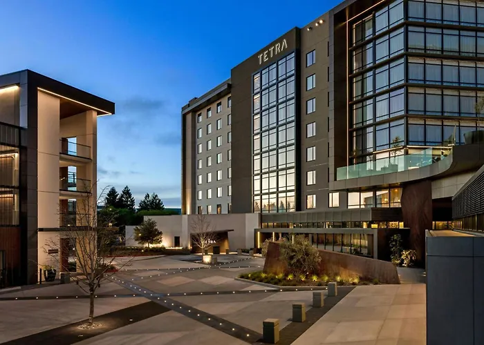 Tetra Hotel, Autograph Collection features 4-star accommodations with 186 rooms and 14 suites, designed for a serene experience. The onsite amenities include an outdoor pool, fitness center, and American and Asian breakfast options. Guests can enjoy a signature restaurant offering a California seasonal menu.