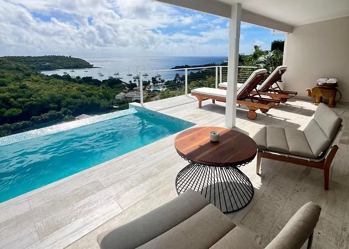 The Inn At English Harbour is a luxurious boutique hotel featuring an infinity pool, beach access, and two on-site restaurants with international and Caribbean cuisine. With a Booking.com rating of 8.7/10, this five-star English Harbour hotel offers an intimate atmosphere and a unique blend of colonial-style and contemporary luxury.