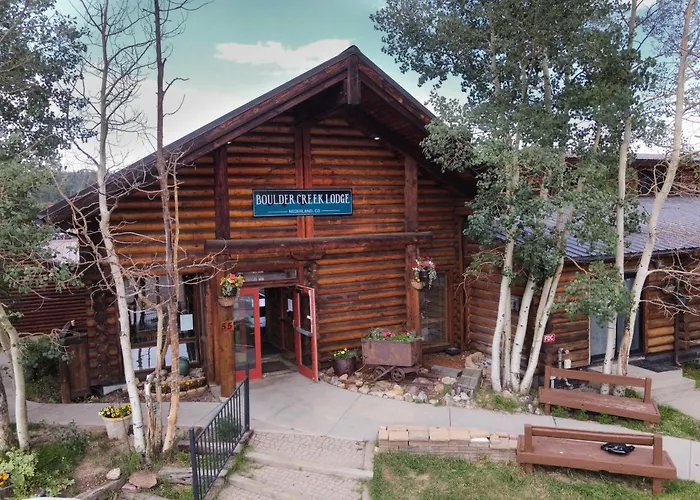 The Boulder Creek Lodge features a conference center and meeting room suitable for events or gatherings. Outdoor activities such as hiking, fishing, and scenic drives are readily available, with nearby attractions like Barker Meadow Reservoir and Indian Peaks Wilderness.