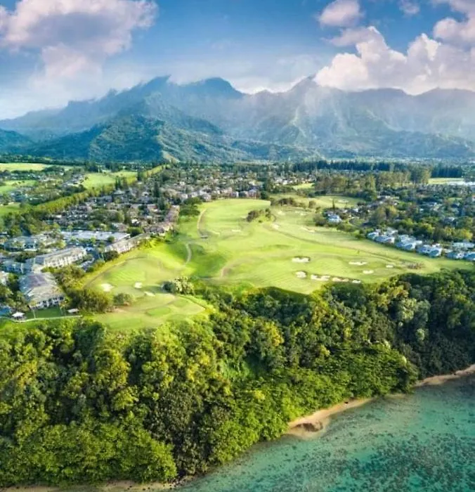 The Cliffs At Princeville offers oceanfront condominium suites on a secluded bluff, providing spacious living in a 3-star setting. Guests can access a wide array of amenities, including tennis courts and an electric car-sharing service. With a 7.6/10 rating on Booking.com, this Princeville hotel emphasizes sustainability and comfort.