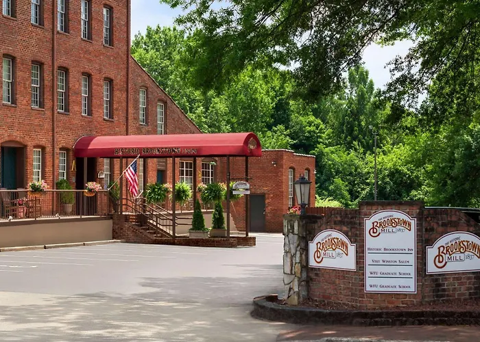The Historic Brookstown Inn, Trademark Collection By Wyndham, is a 3-star Winston-Salem hotel featuring 70 uniquely appointed guest rooms adorned with eighteenth and nineteenth-century antiques. Guests enjoy complimentary hot breakfast, evening wine and cheese receptions, and access to flexible meeting spaces. This historic inn blends charm with modern conveniences.