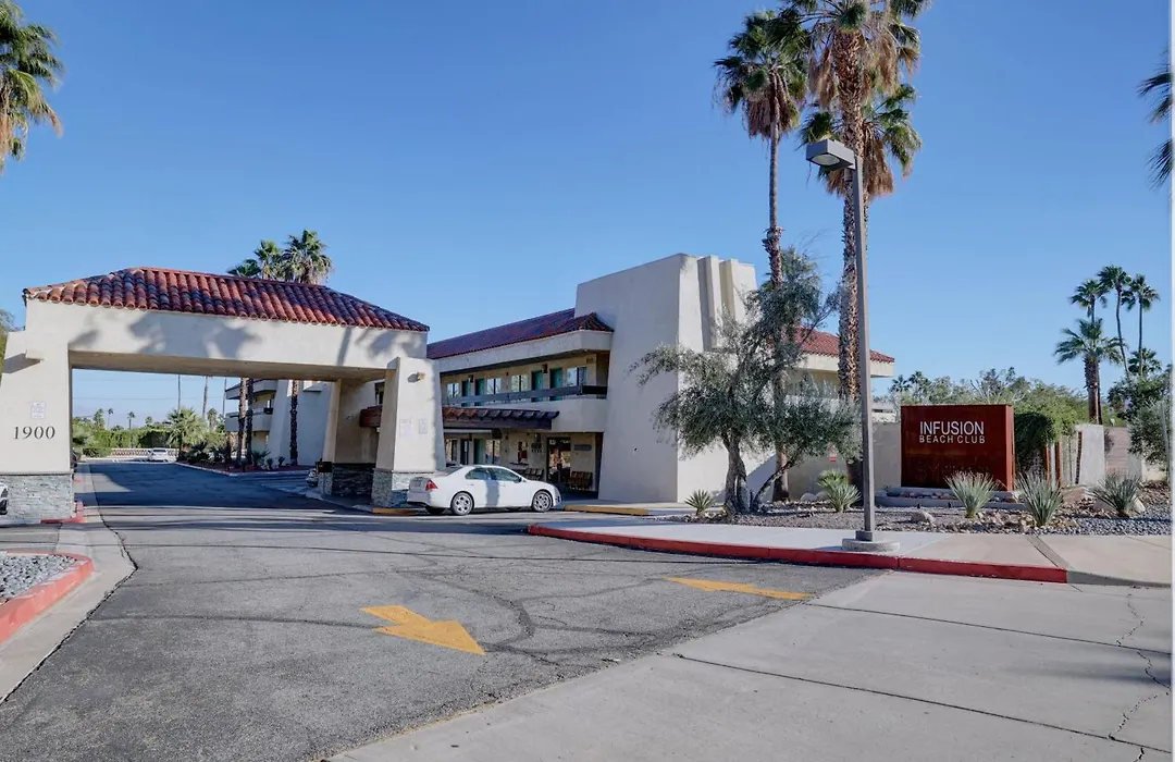 The Infusion Beach Club, a 2-star Palm Springs hotel rated 7.7/10 on Booking.com, offers 62 uniquely decorated rooms and a heated outdoor pool with mountain views. Additional amenities include complimentary wireless Internet access and room service.
