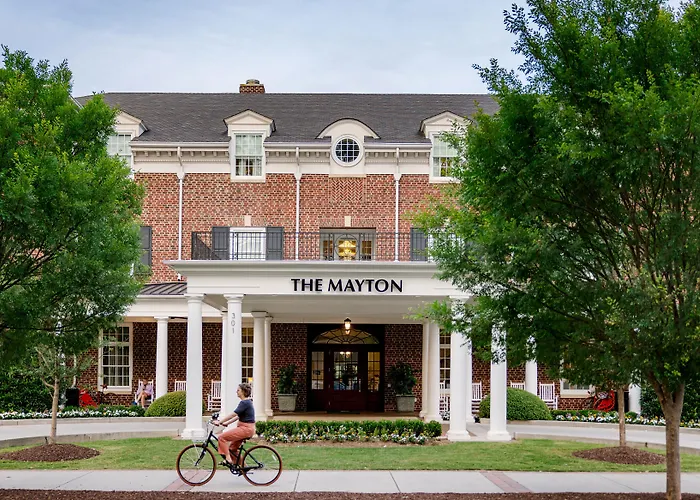 The Mayton, a 4-star boutique hotel in Cary, offers 45 uniquely designed guest rooms with premium bedding and access to a fitness center, garden, and complimentary WiFi throughout. The on-site Peck & Plume Restaurant serves American cuisine and brunch. Guests will appreciate the relaxed elegance and thoughtful accommodations during their stay.