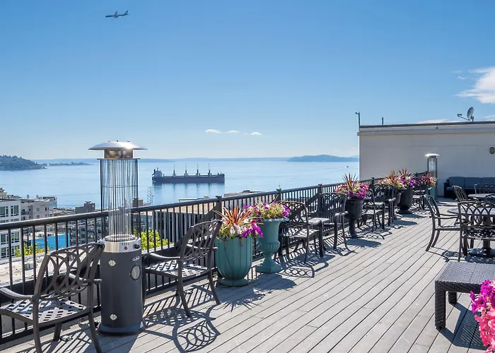 Offering spacious rooms and an acclaimed rooftop terrace, The Mediterranean Inn provides spectacular views of the Seattle Skyline, Space Needle, and Mount Rainier. This 3-star Seattle hotel features amenities such as onsite parking, loaner bikes, and a modern fitness center for convenience and relaxation.