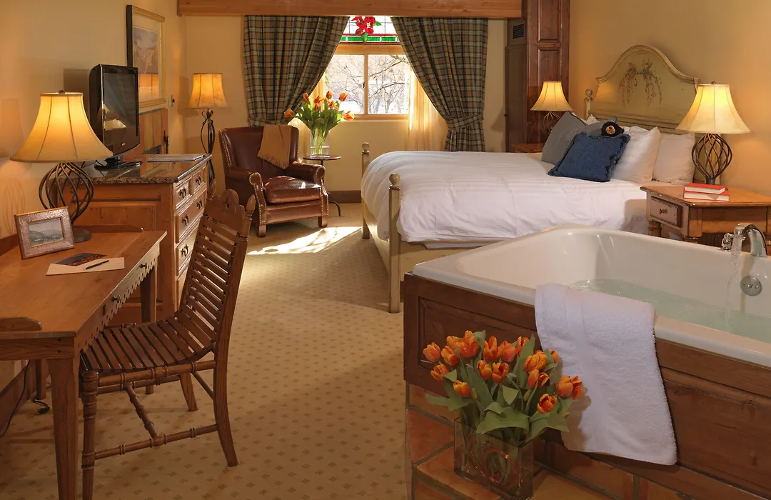 Rooms at Rusty Parrot Lodge And Spa offer a blend of luxury and comfort, featuring amenities such as fireplaces, balconies, and flat-panel satellite TVs. The selection includes King rooms, King Fireplace rooms, Double Queen rooms, and suites with natural light and beautiful views.