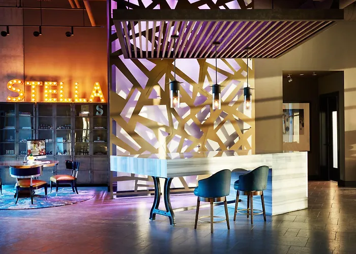 Dining options at The Stella include Campfire, serving locally sourced cuisine, and Hershel's cocktail bar known for its selection of artisanal spirits. For breakfast, POV offers fresh baked goods and specialty coffee.