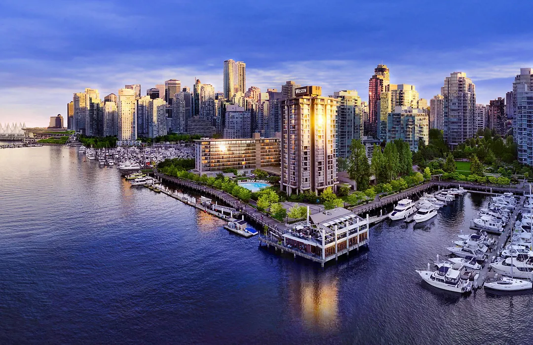 The Westin Bayshore, Vancouver, a 5-star hotel, features luxurious accommodations and direct access to the Vancouver Seawall and Stanley Park. Guests can enjoy amenities such as an outdoor and indoor pool, a state-of-the-art fitness studio, and a variety of dining options.