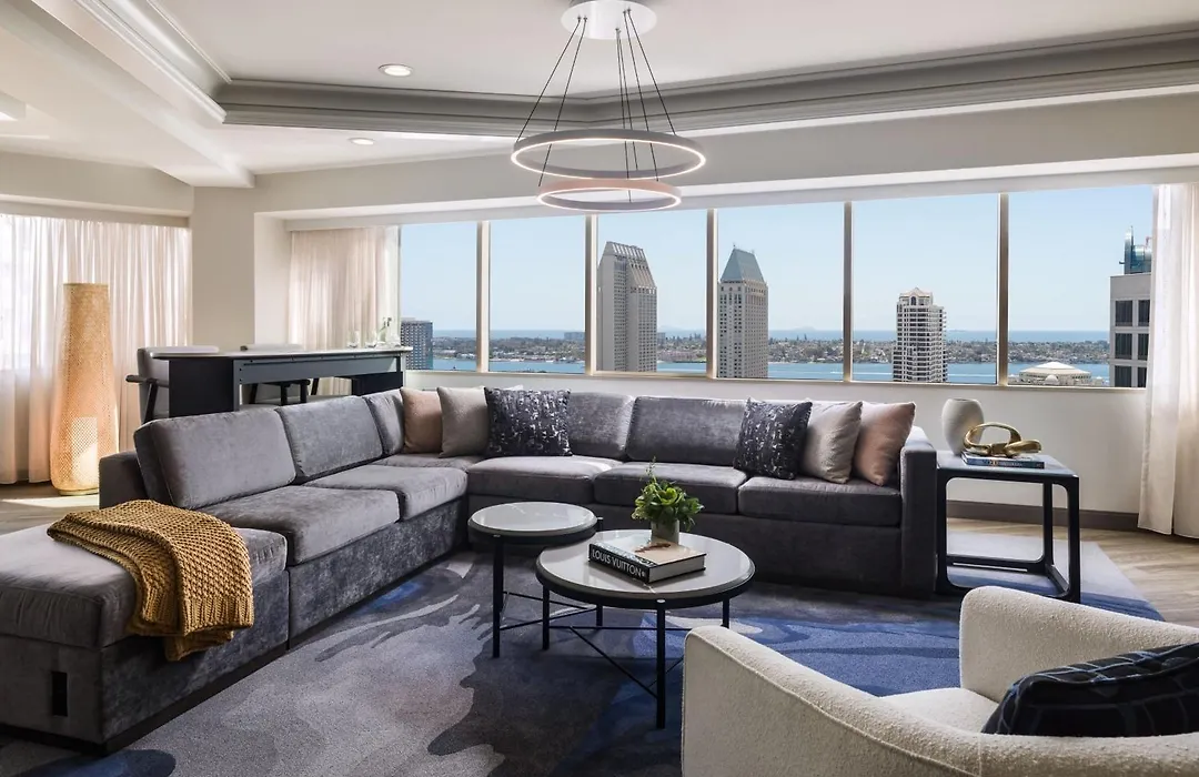 Located near major landmarks like the San Diego Convention Center and USS Midway Museum, The Westin San Diego Bayview offers easy access to transport options, including San Diego International Airport, 2.5 miles from the hotel. The property provides a daily destination amenity fee that includes airport transfer and amenities.