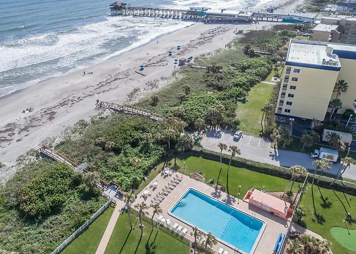 Cocoa Beach Towers offers 4-star accommodations with a beachside location, an outdoor pool, and a tennis court. Each apartment features a fully equipped kitchen with modern appliances, ensuring a convenient stay. Rated 8.9/10 on Booking.com, this Cocoa Beach hotel is ideal for families and groups seeking relaxation and recreation.