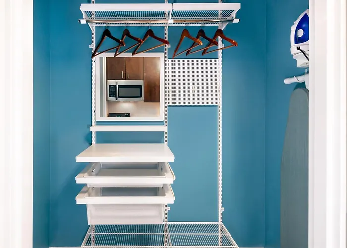 Guests can select from studio, 1-bedroom, or 2-bedroom suites, all equipped with full kitchens and smart TVs. Each room offers free Wi-Fi and comfortable bedding, ensuring a restful stay.