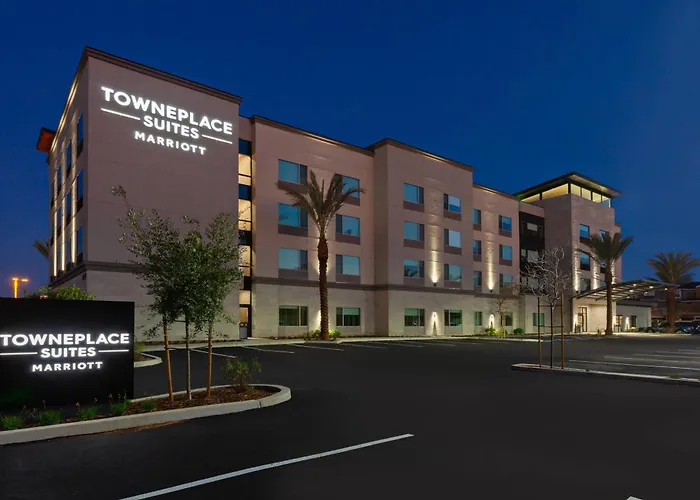 Towneplace Suites By Marriott San Diego Central features 3-star accommodations with amenities including an outdoor heated pool, fitness center, and complimentary American Hot breakfast buffet. The hotel offers pet-friendly, studio-style suites designed for extended stays, ensuring a home away from home experience.