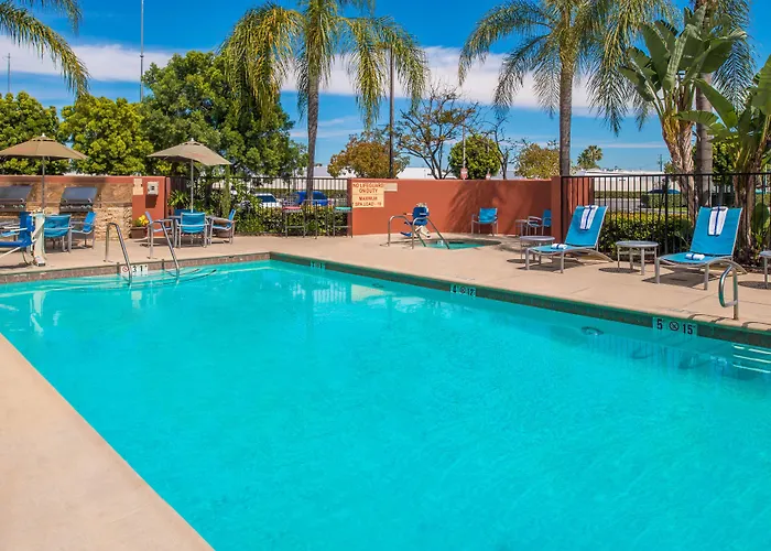 Towneplace Suites By Marriott Anaheim Maingate Near Angel Stadium is a family-friendly 3-star hotel offering spacious pet-friendly suites equipped with kitchens. Guests can start their day with a complimentary breakfast and enjoy access to a fitness center and heated outdoor pool.