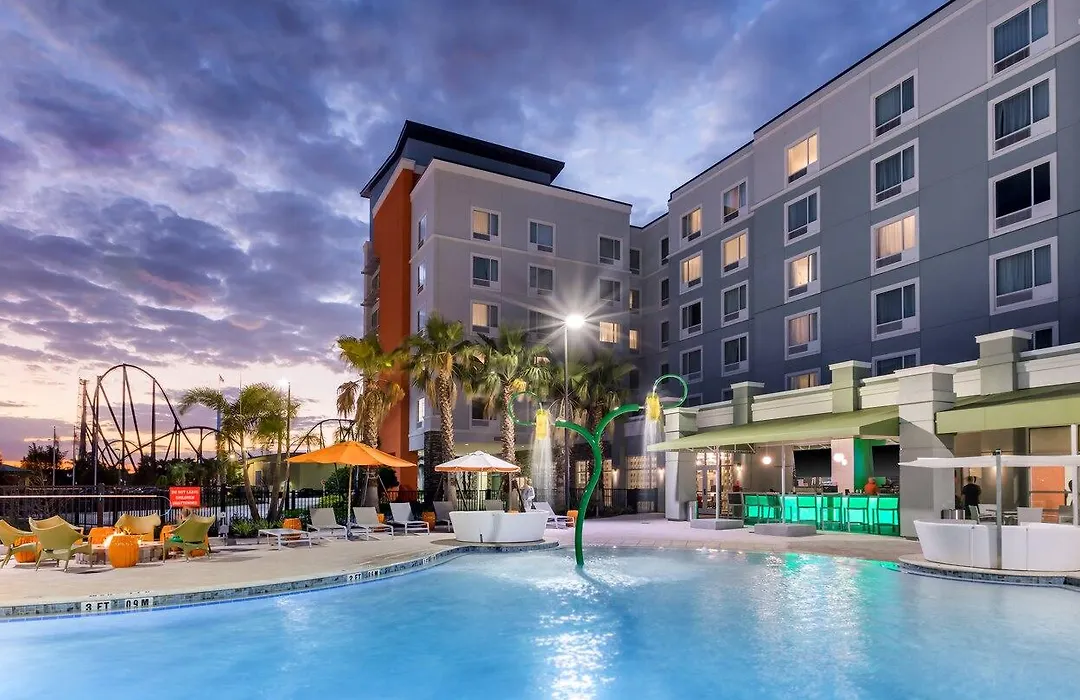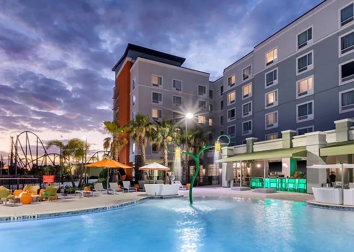 TownePlace Suites by Marriott Orlando at SeaWorld offers 3-star accommodations equipped with full kitchens, ideal for both families and longer stays. The hotel features free WiFi and an outdoor swimming pool, making it a practical choice for leisure travelers.