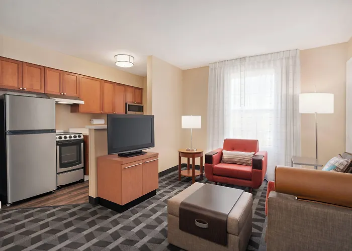 Accommodations at TownePlace Suites include 148 air-conditioned rooms equipped with coffee/tea makers, hair dryers, and flat-screen TVs. Certain rooms feature separate seating areas and sofa beds, adding convenience for extended stays.