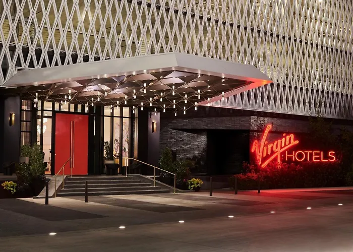 Virgin Hotels Dallas (4-star, 8.7/10 Booking.com rating) offers an innovative lifestyle hotel experience, complete with spacious chambers and a vibrant dining scene. Key amenities include a rooftop pool, an expansive gym, and an eclectic selection of dining options, all located in the Design District.