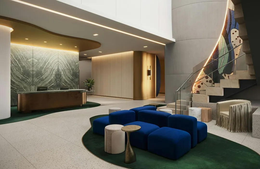 Dining options include Villa Azur, inspired by the South of France, and Cook Hall, serving American gastropub-style dishes. The Living Room Bar is open for bites and drinks from 7 am until late, with a happy hour that features signature cocktails and a live DJ.