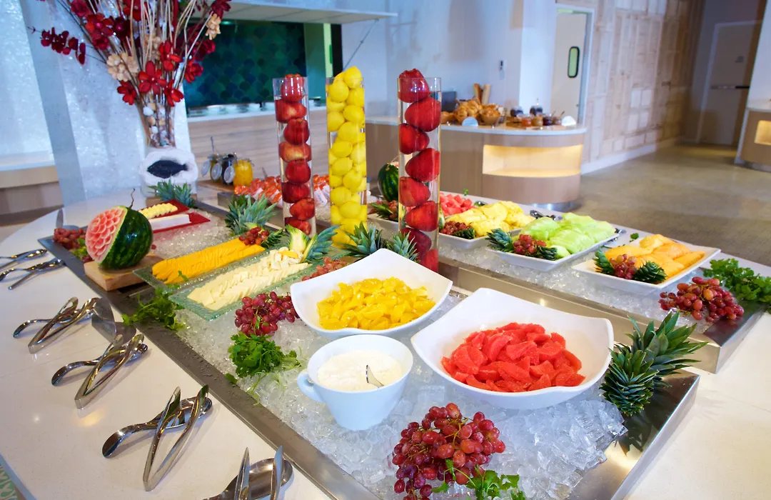 Dining options include Edgewater Grill, known for its generous portions of local specialties and fresh seafood, alongside four additional restaurants offering a variety of cuisines. Guests can also enjoy drinks at the Rum Cay Lobby Bar and Hog Bar, both open throughout the day.