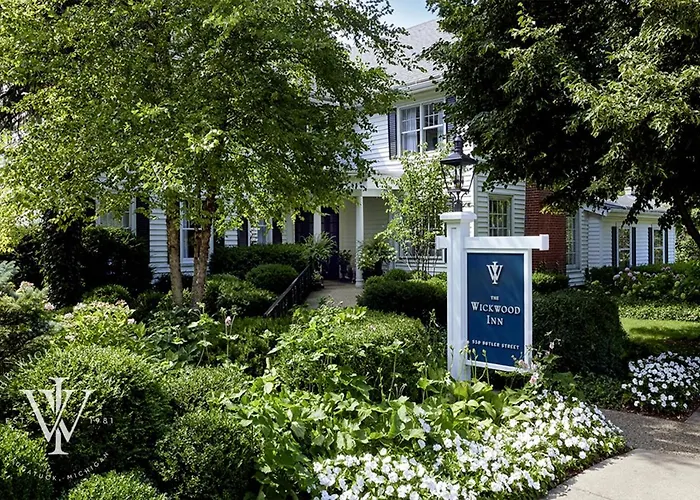 Wickwood Inn's tranquil gardens offer a serene setting for relaxation. Guests can explore nearby attractions, including the Button-Petter Gallery and Kalamazoo Lake, and enjoy seasonal activities like apple picking and strolls along the beach.