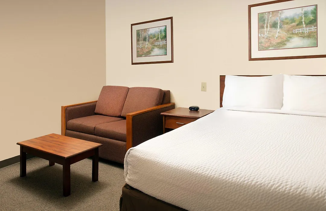 The hotel offers laundry facilities, free parking, and express check-out for guest convenience. Housekeeping services are provided every other week for long-stay guests. Each suite is equipped with essential kitchenware, available for purchase at the front desk for those needing additional items.