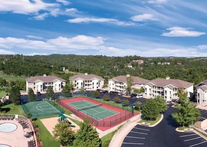 Worldmark Branson, a 3-star Branson hotel rated 8.7/10 on Booking.com, offers family-friendly accommodations with amenities like a seasonal outdoor swimming pool and basketball courts. This resort provides spacious one- and two-bedroom suites equipped with full kitchens and washer/dryers.