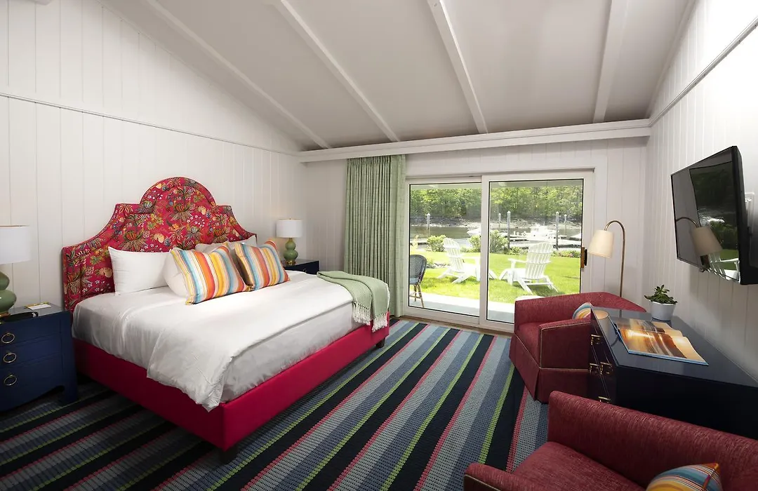 The Yachtsman Lodge & Marina features 30 bungalow-style accommodations, including accessible options and dog-friendly bungalows. Each room includes a king-size bed, electric fireplace, and a private terrace with river views. All rooms are equipped with complimentary Wi-Fi, a smart TV, and a wine refrigerator.